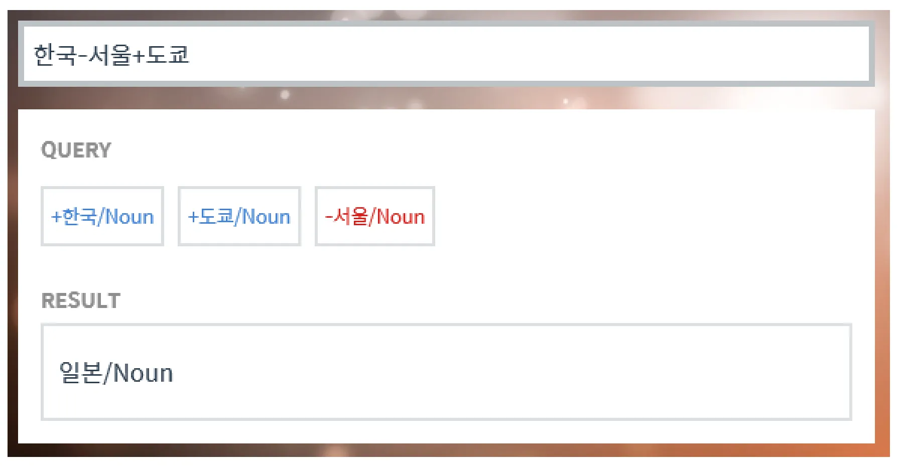 Word2Vec๋ฅผ ํ์ฉํด, ๋จ์ด ๊ฐ์ ์๋ฏธ์ฐ์ฐ์ ์ํํ ์.