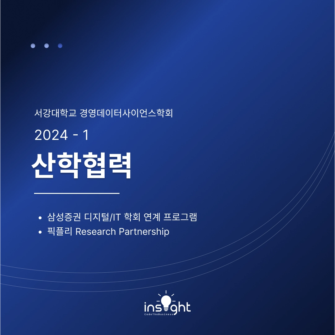 인사이트 학회원은 BDA가 주관하는 산학협력 공모전에 협업 동아리 학회원 자격으로 참가할 수 있습니다.